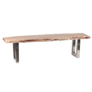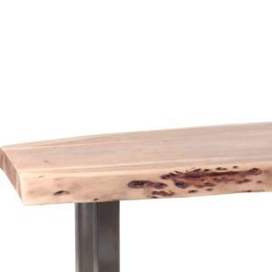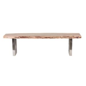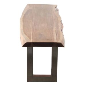 Arizona Acacia Wood Live Edge Metal Legs Bench. Natural acacia and natural iron