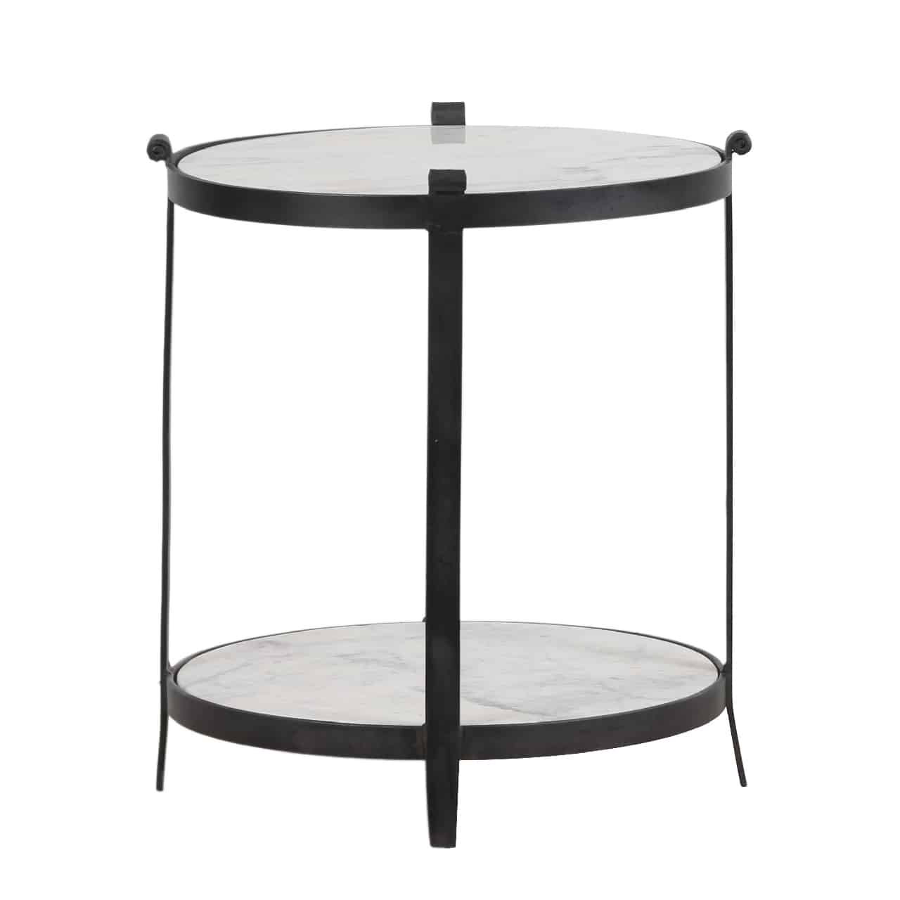 Arden round side table with marble top and shelf