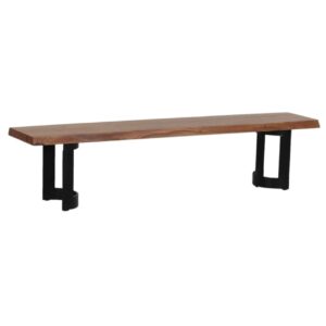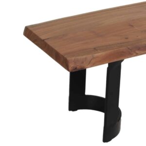 Bent acacia wood dining bench in natural or new pcg grey finish / black iron
