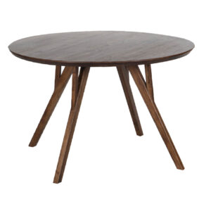 Mid Century Acacia Wood Round Dining Table Large