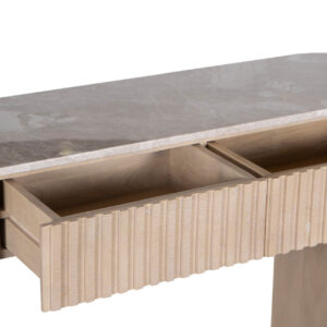 Reed Travertine Marble Top 2 Drawer Console Table